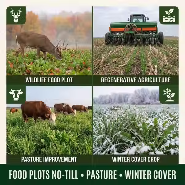 60/40 Premium Blend – 60% Winter Rye, 40% Chicory for balanced coverage and deep soil benefits