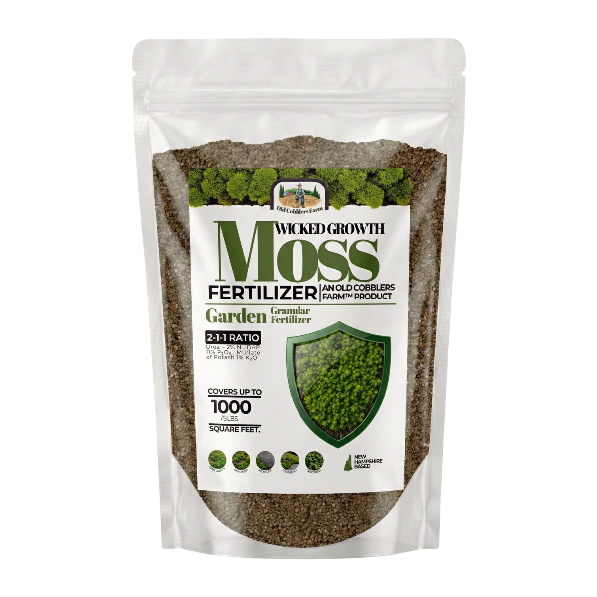 2% Total Nitrogen – Enhances green color without burning delicate tissues. 1% Available Phosphate (P₂O₅) – Supports basic cellular metabolism at moss-appropriate levels. 1% Soluble Potash (K₂O) – Maintains cell function and moisture balance. Ultra-gentle formula for sheet moss, cushion moss, haircap moss, and all moss garden applications.